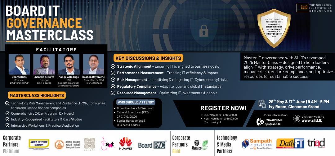 With businesses increasingly reliant on technology to drive growth, innovation, and resilience, the role of the board in providing effective oversight of IT strategy, risk, and compliance has never been more important. Recognizing this, SLID has restructured its signature Masterclass with expert input and global best practices, addressing the persistent knowledge gaps that challenge boardrooms worldwide.