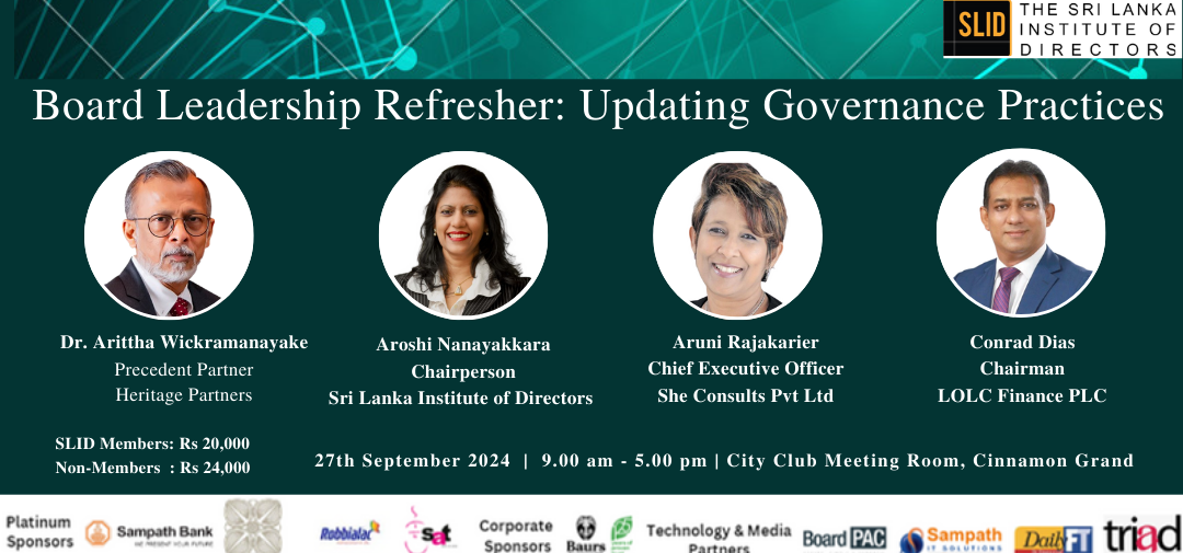 The Sri Lanka Institute of Directors (SLID) is pleased to present the “Board Leadership Refresher: Updating Governance Practices,” an exclusive full-day workshop designed for senior directors and C-suite executives, for intake two.